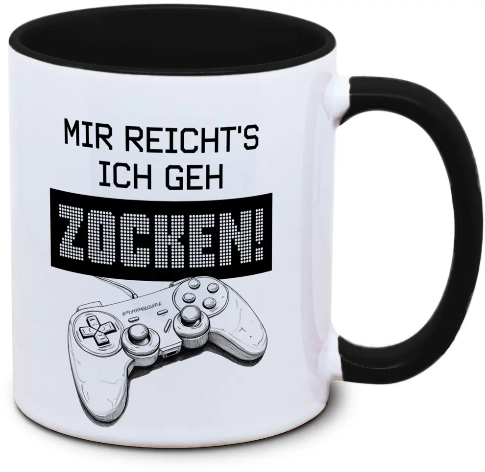 Diese stylische Keramiktasse ist das perfekte Geschenk für alle Gamer, die ab und zu einfach abschalten wollen! Der Henkel und die Innenseite sind in elegantem Schwarz gehalten, während die Außenseite mit dem humorvollen Aufdruck "Mir reicht's ich geh zocken!" und einem coolen Gamepad-Design verziert ist. Perfekt für eine entspannte Gaming-Pause oder als täglicher Begleiter für leidenschaftliche Zocker!