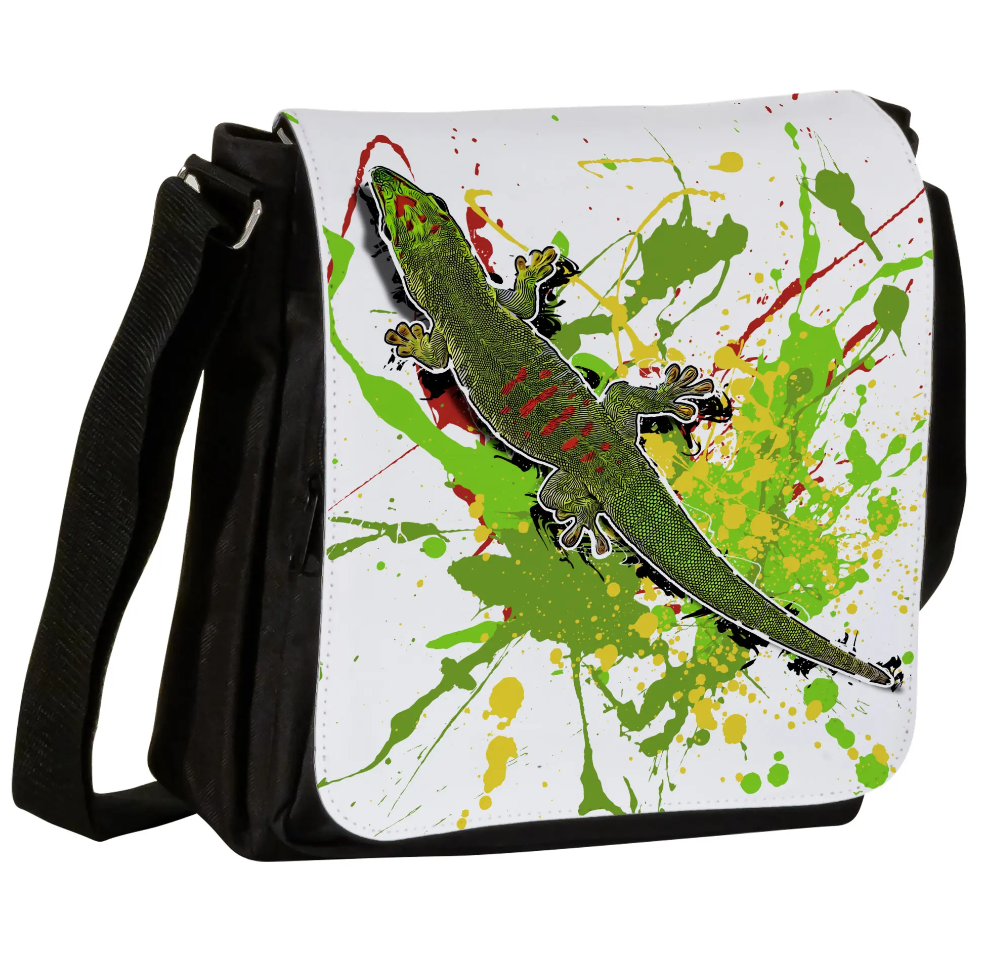Produktinformationen "Schultertasche S mit Taggecko (Phelsuma grandis)"